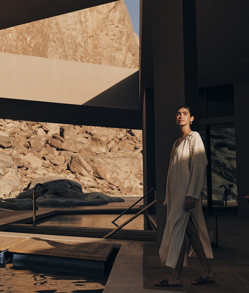 Com vilas esculpidas diretamente na rocha e suítes em cavernas, o lodge oferece uma experiência de imersão total no deserto, combinando design minimalista com conforto extremo.