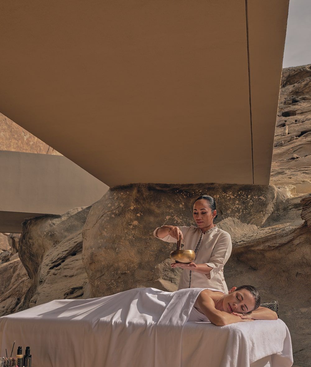 • Spa com design escultural e tratamentos inspirados em tradições árabes.