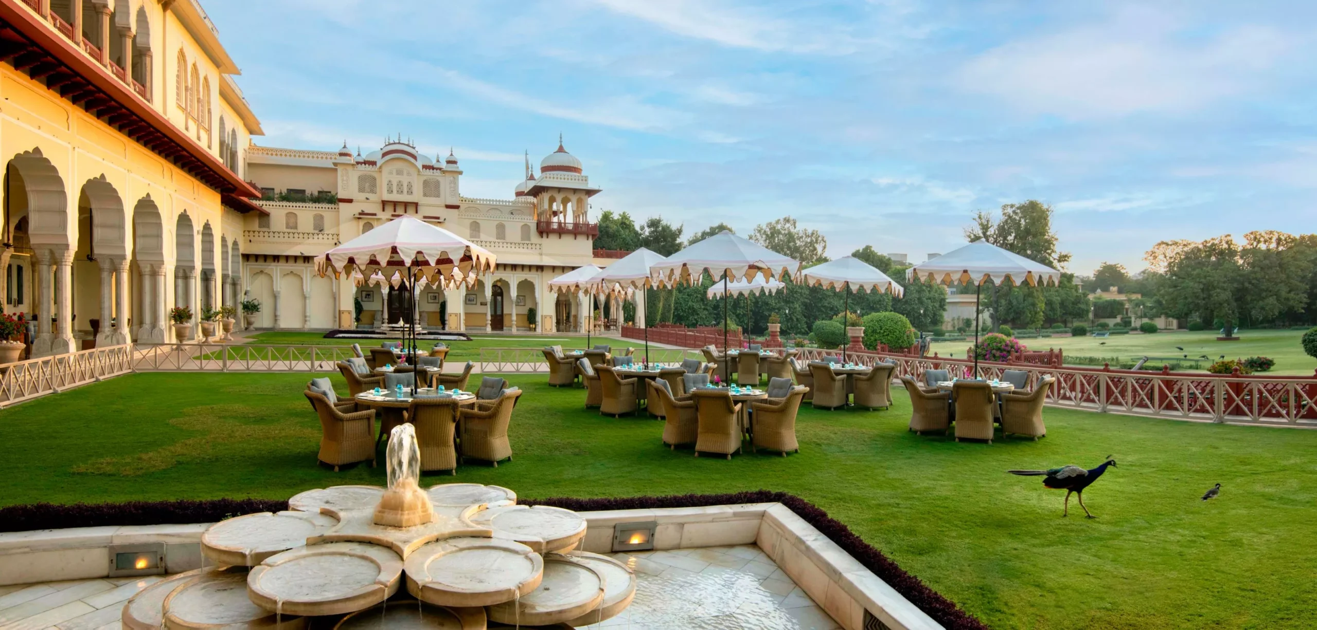 Viajantes que buscam Localização e Silêncio: Apesar de estar no centro de Jaipur, os 47 acres de jardins isolam completamente o hóspede do ruído da cidade.