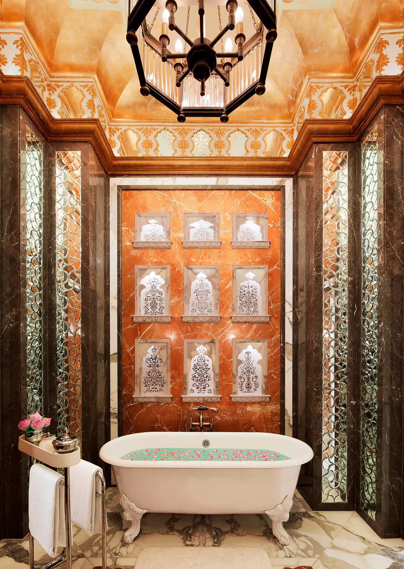The Suvarna Mahal: O restaurante de gala do hotel, localizado no antigo salão de banquetes real, com teto pintado a ouro, lustres de cristal de alabastro e prataria original para servir pratos das quatro cozinhas reais da Índia.