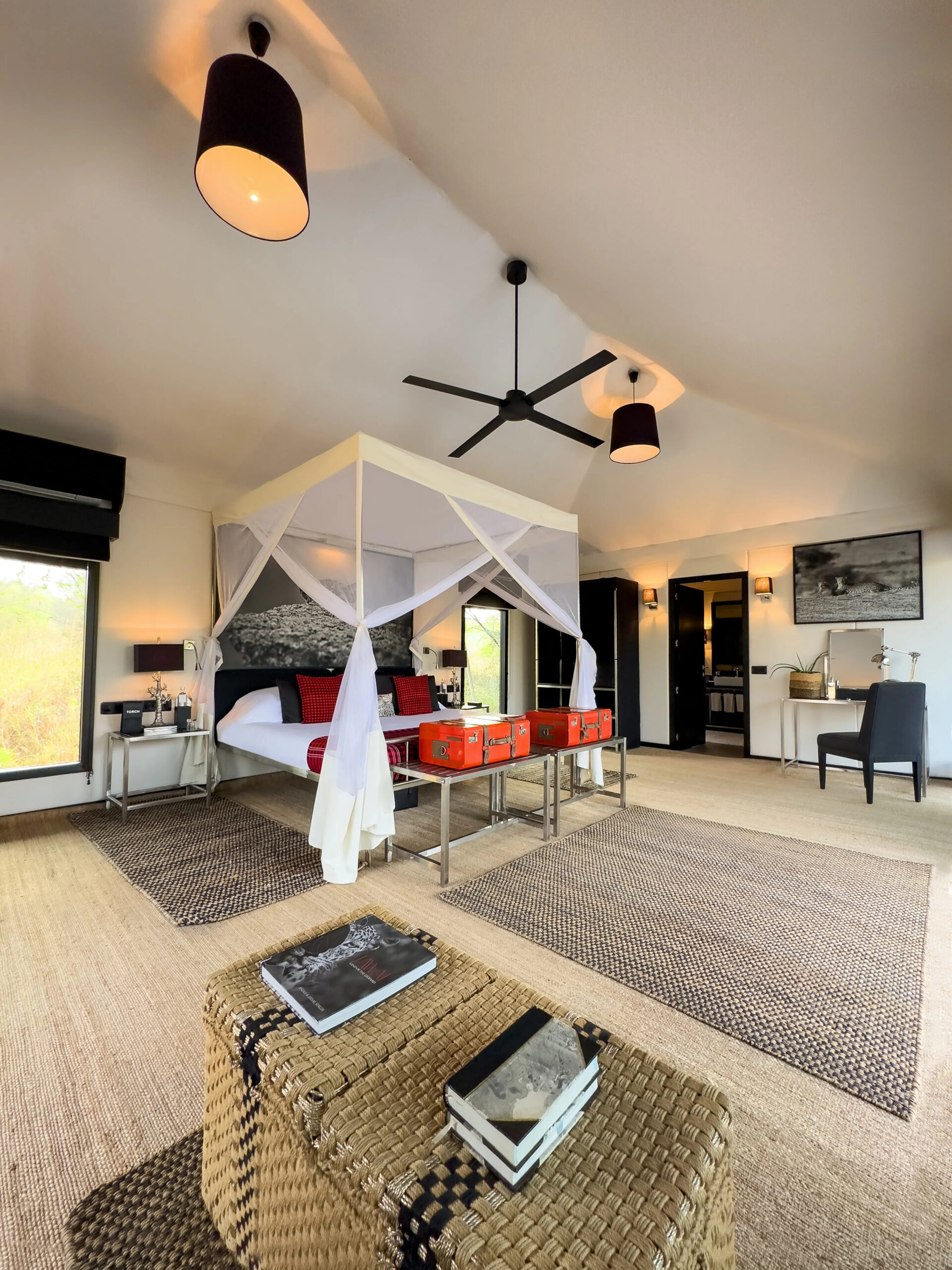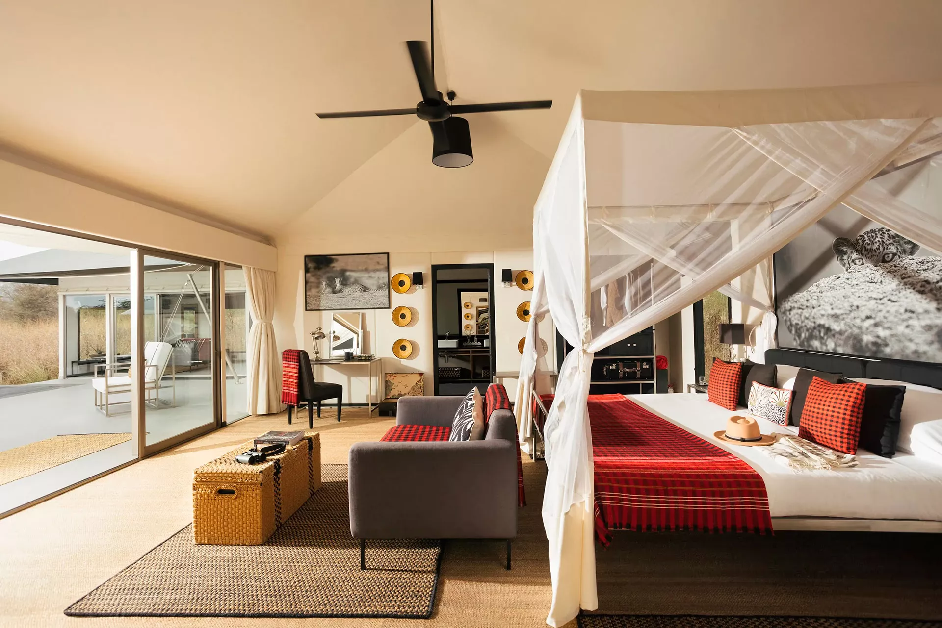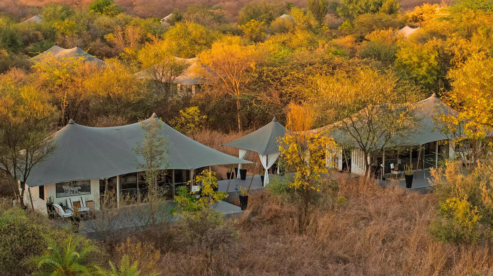 O SUJÁN Jawai é um acampamento pioneiro que combina conservação, cultura local e um design de tirar o fôlego. As tendas, em tons de cinza, branco e vermelho vibrante (homenagem aos turbantes da tribo Rabari), flutuam sobre uma paisagem lunar de rochas vulcânicas e arbustos baixos. Não há cercas entre o acampamento e a natureza; os leopardos circulam livremente pelas colinas ao redor. É um lugar onde o luxo não é medido por cristais, mas pela conexão visceral com a terra, pelo silêncio do deserto e pelo serviço de elite de uma equipe que conhece cada leopardo pelo nome.
