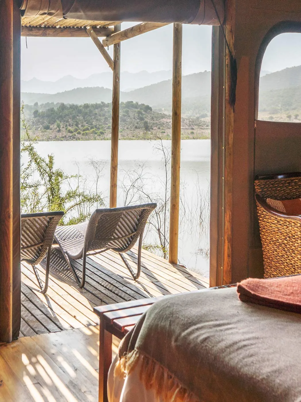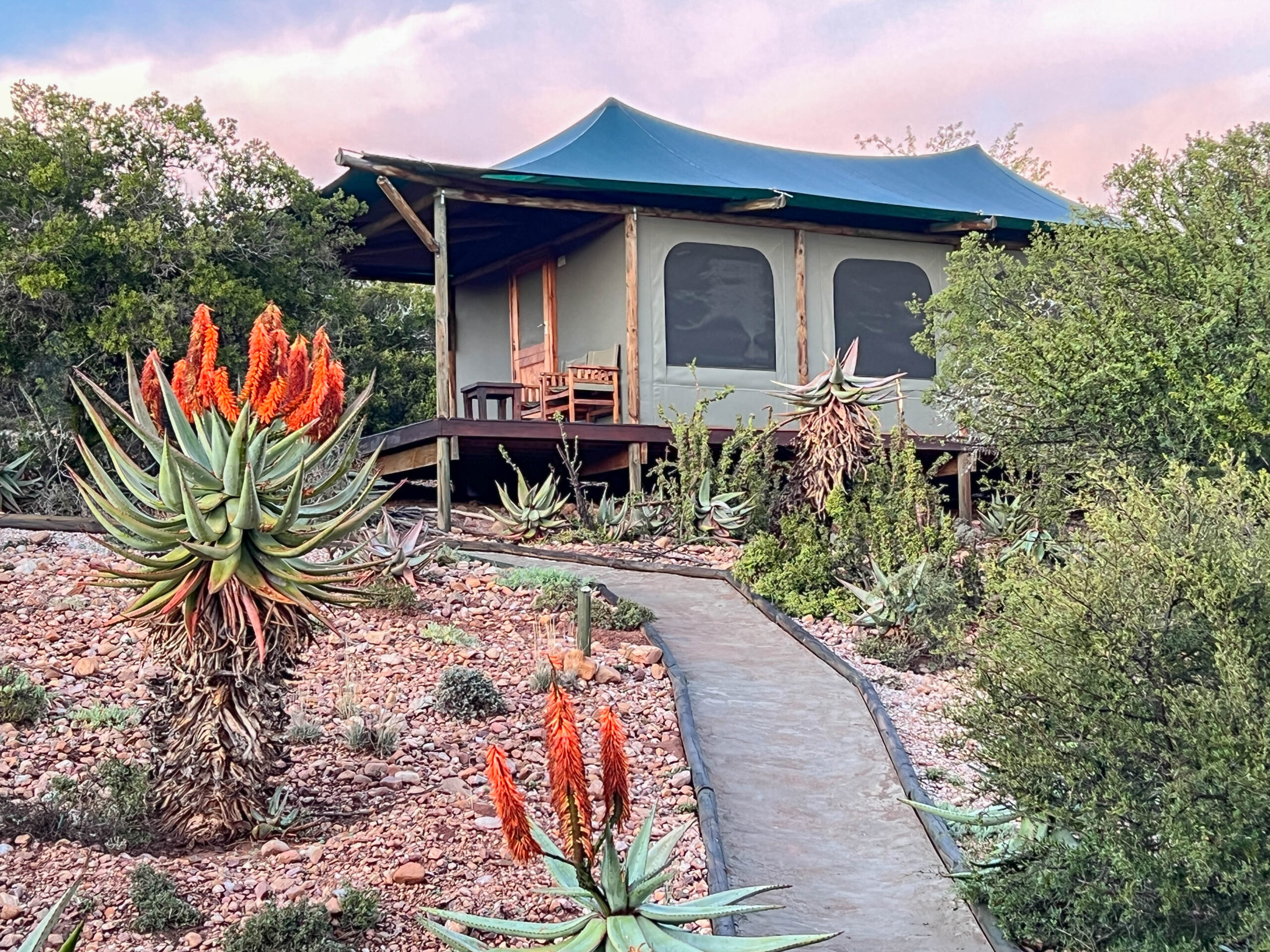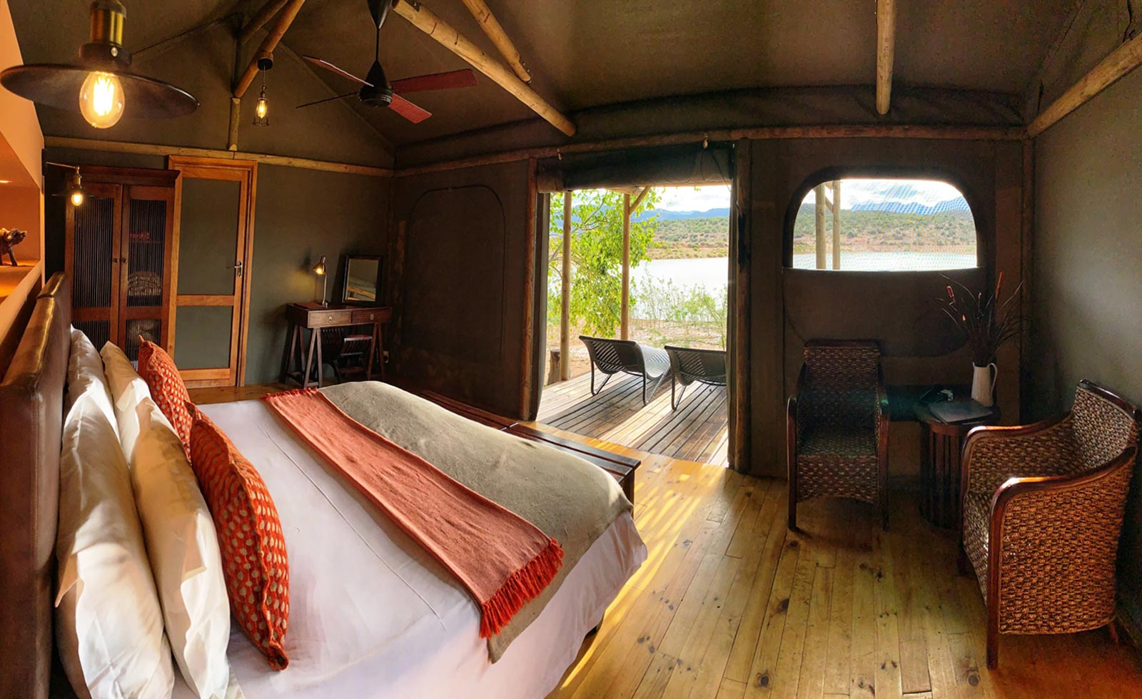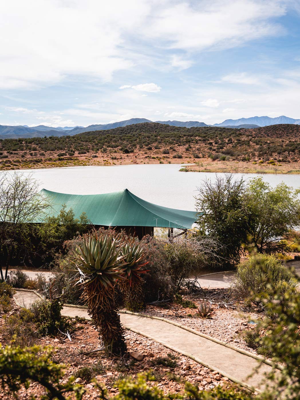 Localizado nos arredores de Oudtshoorn, no coração da Klein Karoo, o Buffelsdrift Game Lodge oferece uma experiência de safári em tendas luxuosas à beira de um grande lago natural. Com vista para as montanhas Swartberg e acesso à fauna local, é uma opção única de safári na Garden Route.