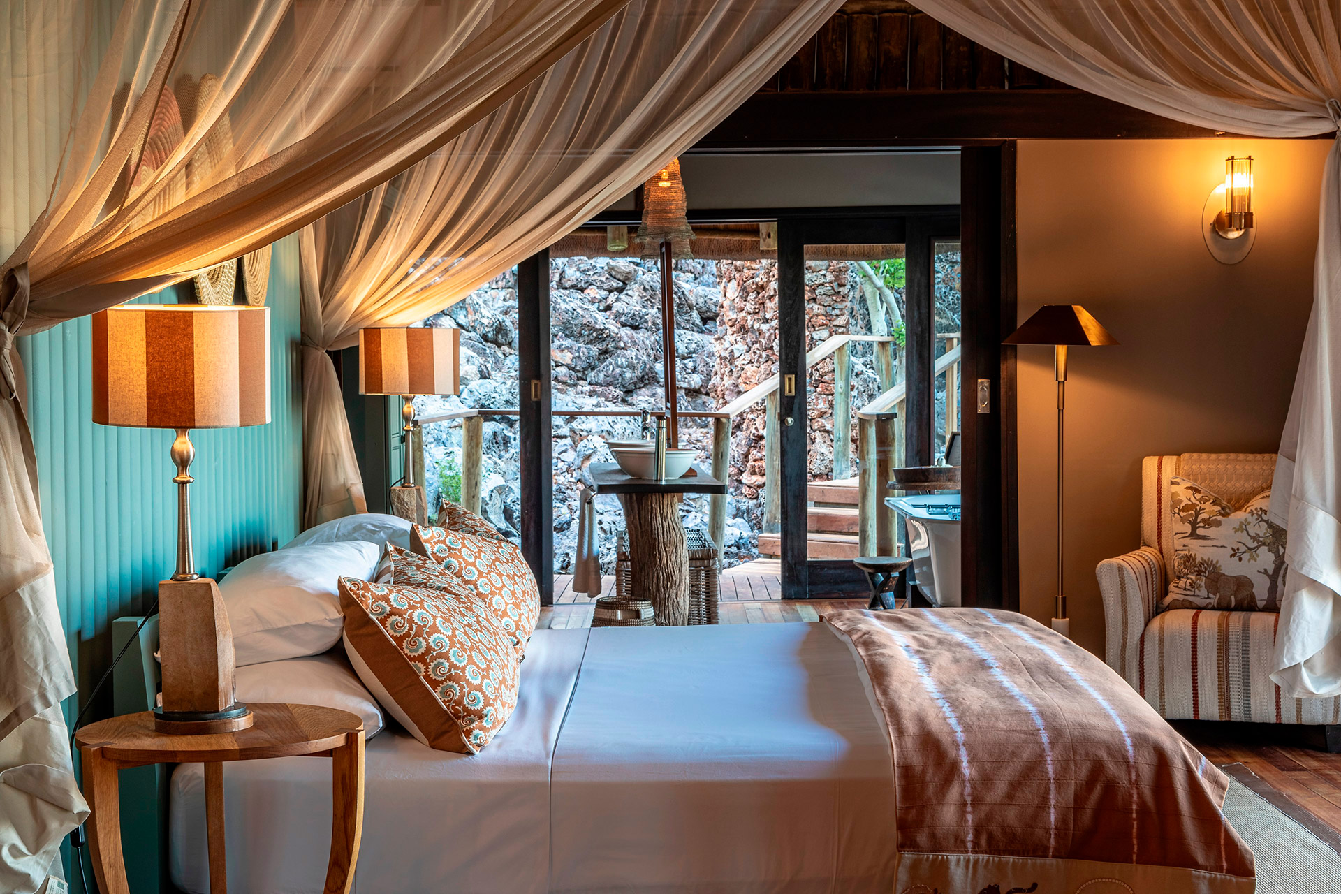 O Little Ongava é considerado um dos lodges mais exclusivos e luxuosos da Namíbia. Localizado dentro da Ongava Private Reserve, que faz fronteira com o Etosha National Park, ele oferece uma experiência intimista e sofisticada, com apenas três suítes privativas. É ideal para viajantes que buscam exclusividade absoluta, safáris personalizados e vistas espetaculares para a savana africana.