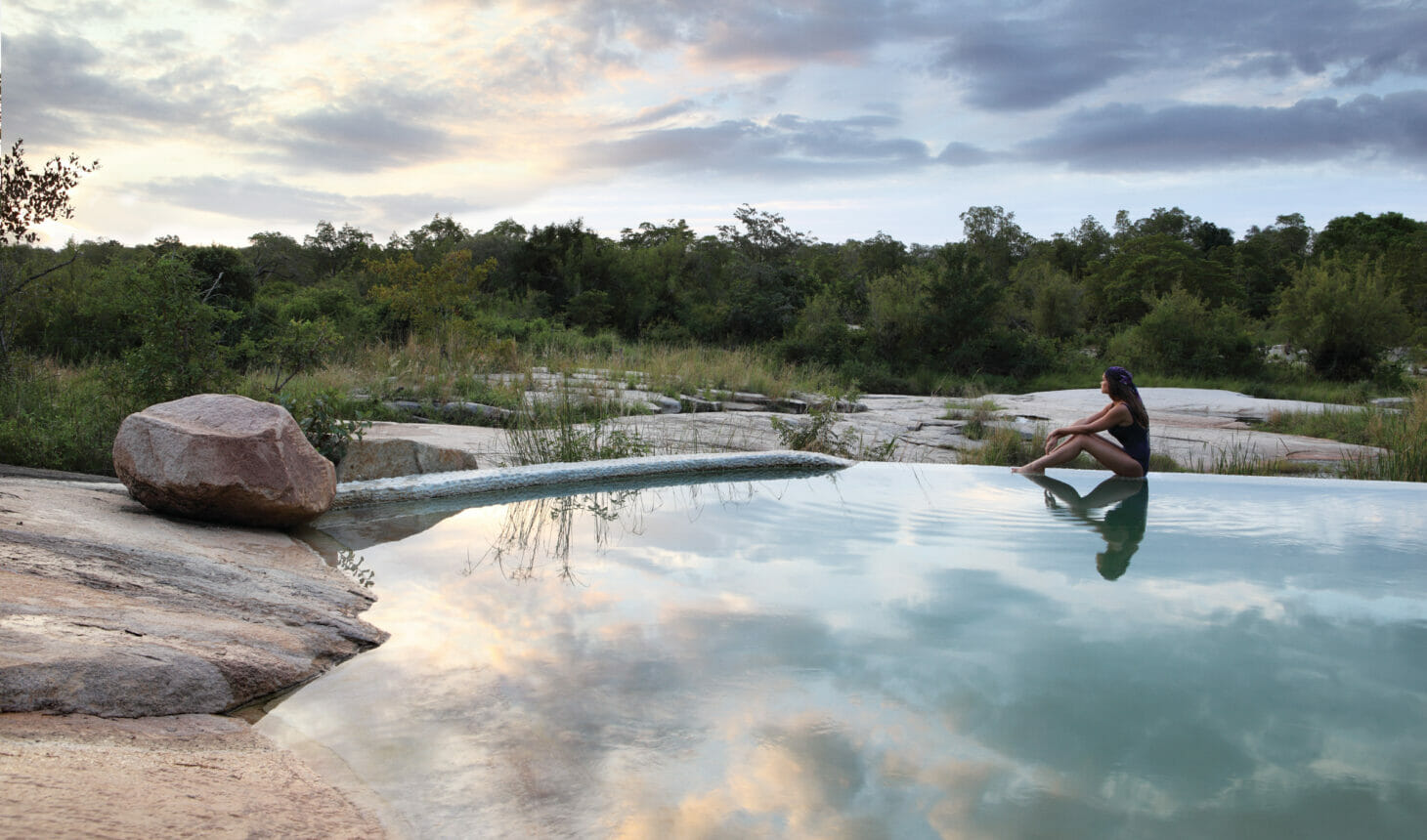 Localizado na Reserva Privada de Sabi Sand, o Londolozi Private Granite Suites é um refúgio ultraexclusivo com apenas três suítes, oferecendo privacidade total e serviço sob medida. O design contemporâneo se integra à paisagem rochosa do rio Sand, criando um ambiente sofisticado e intimista.