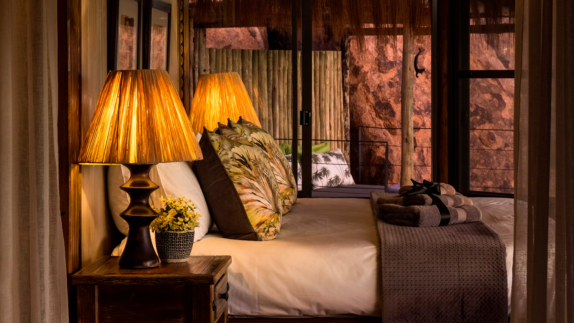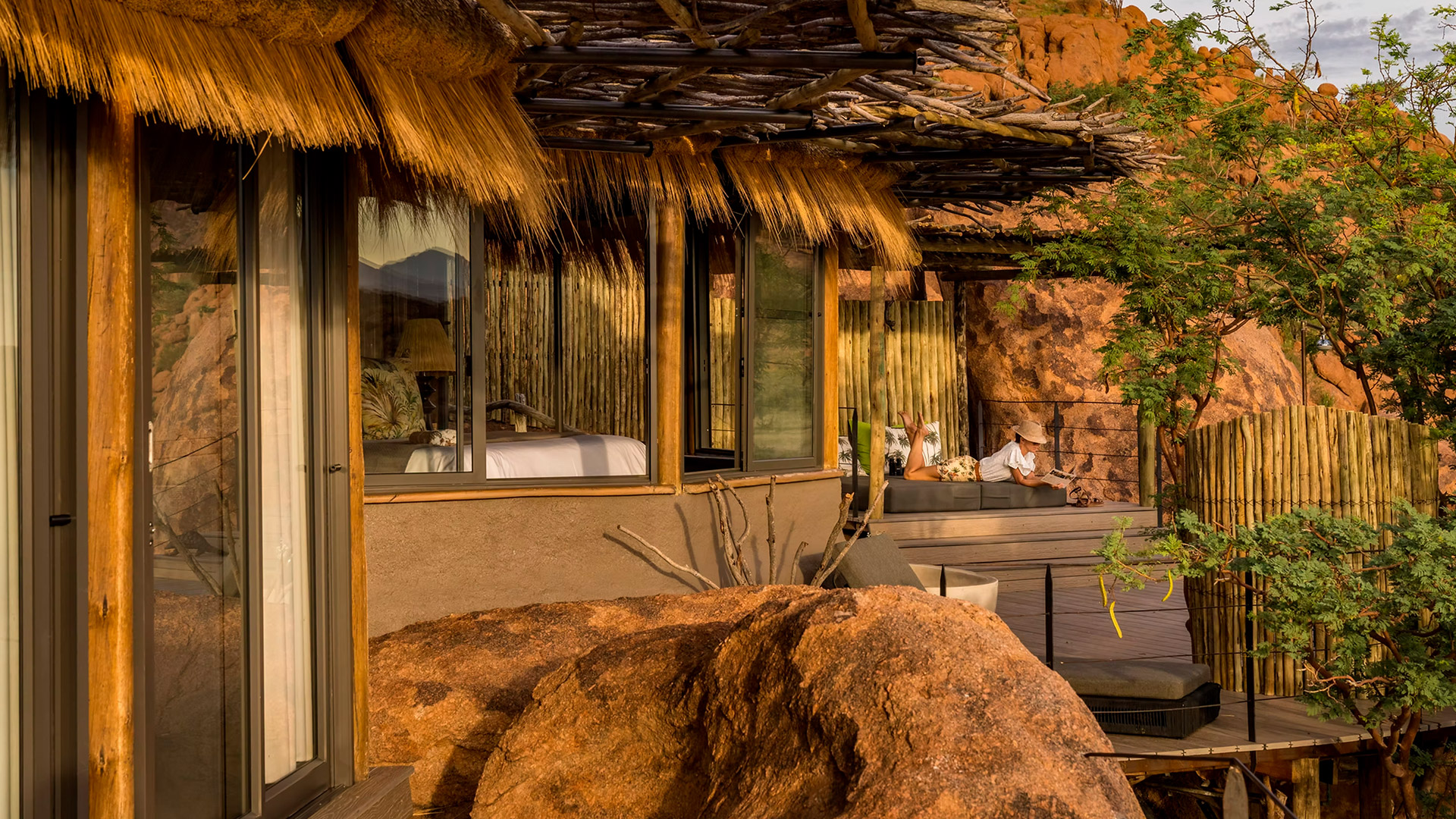 O Mowani Mountain Camp é um lodge boutique de luxo situado entre as formações rochosas de granito vermelho de Damaraland, próximo a Twyfelfontein (Patrimônio Mundial da UNESCO). Integrado à paisagem dramática do deserto, o lodge é conhecido por sua arquitetura orgânica, atmosfera intimista e vistas espetaculares para o vale e as montanhas. É considerado um dos lugares mais românticos da Namíbia.