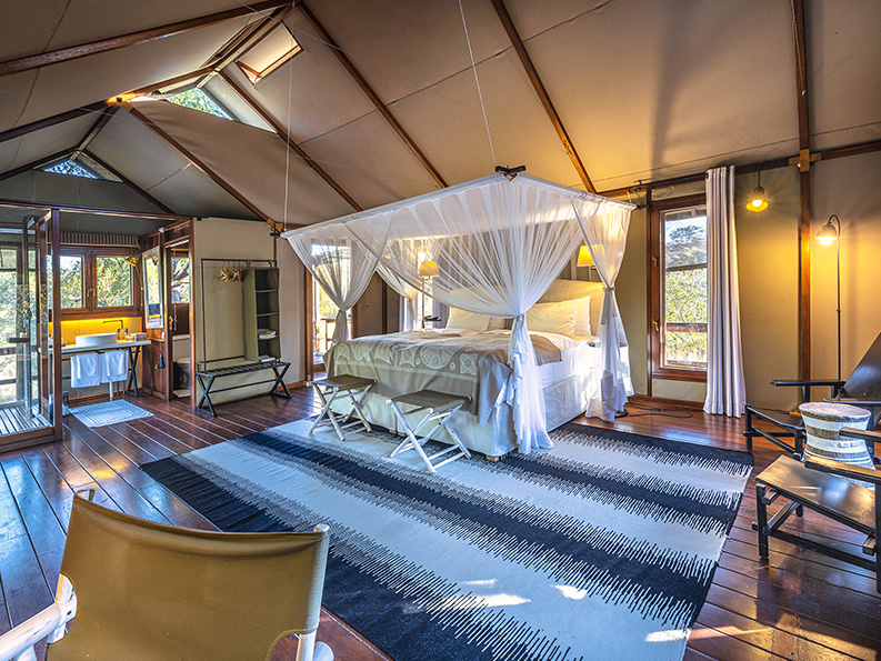 - Bush walks na área privada do lodge, focando em flora e rastreamento de animais menores
