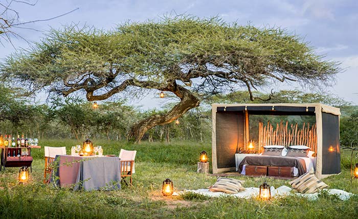 - Fly-camps sob as estrelas, com tendas móveis e jantares ao redor da fogueira