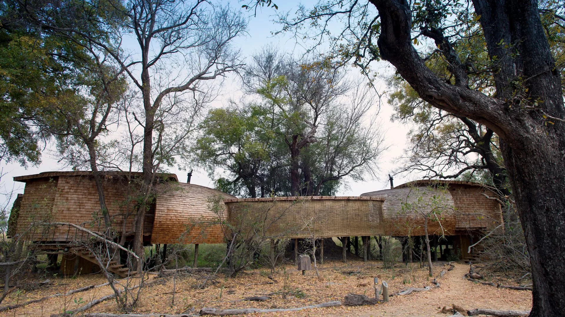 O Sandibe está situado em uma concessão privada de 22.500 hectares adjacente à Reserva de Moremi, uma das áreas mais ricas em biodiversidade do Delta. O lodge é famoso por sua arquitetura inspirada no pangolim (mamífero raro e protegido), que se integra organicamente à paisagem.