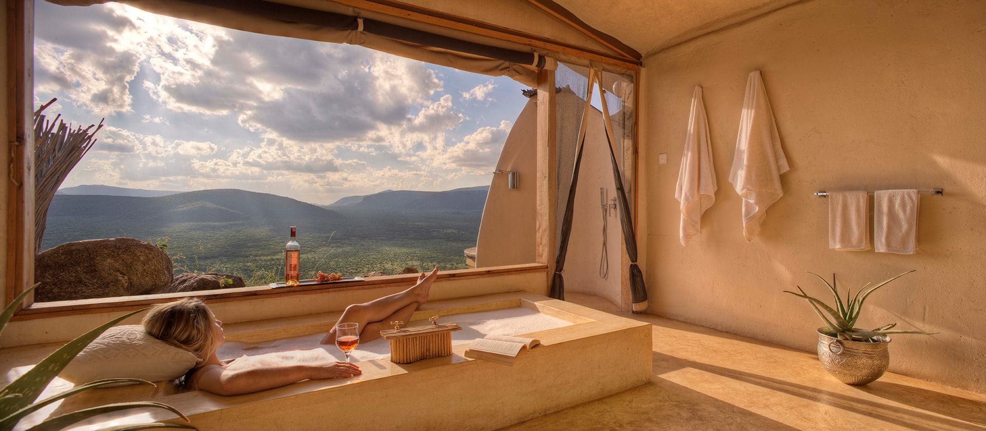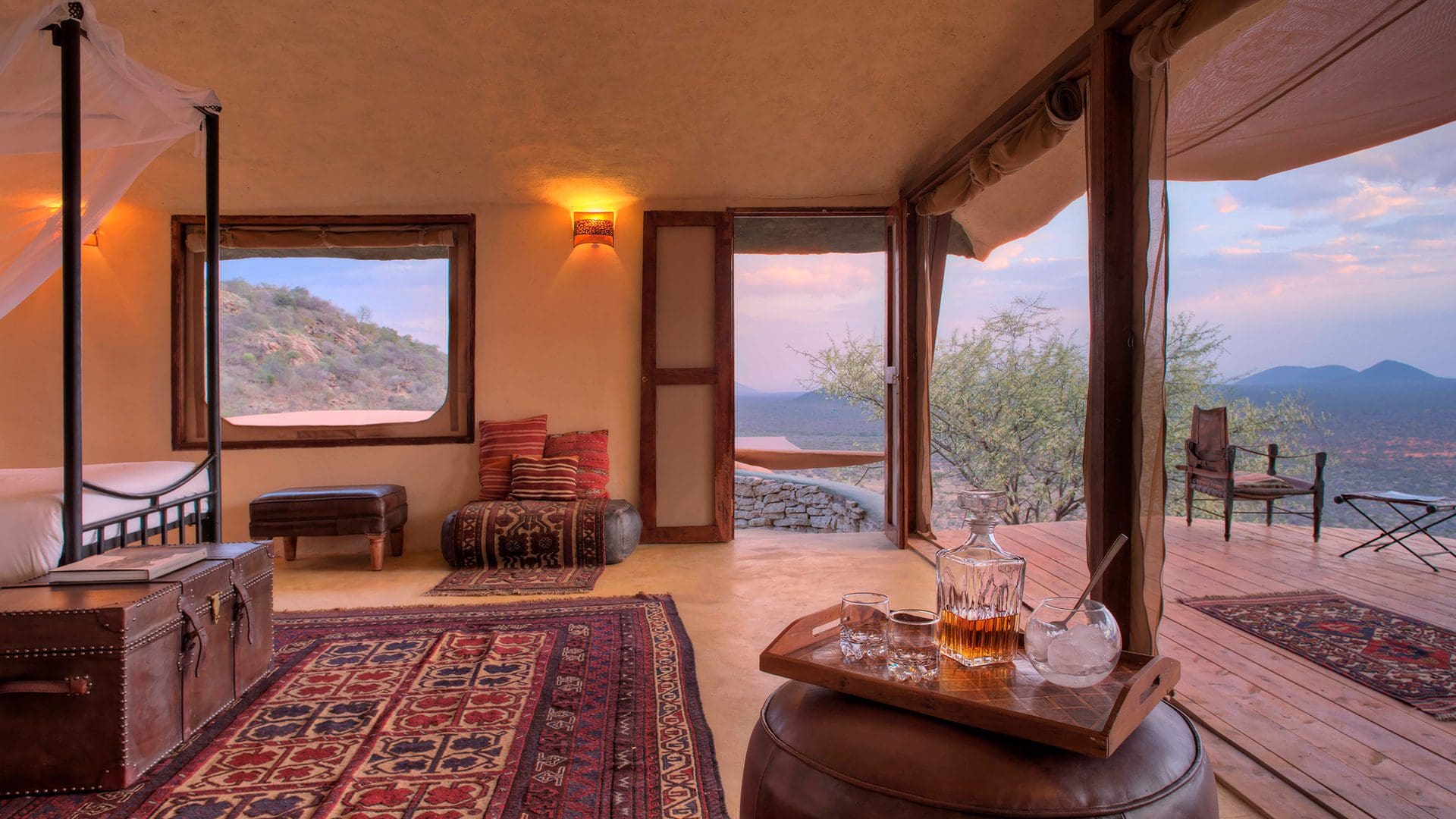 Localizado no alto de uma colina rochosa dentro da Kalama Conservancy, com vista panorâmica para o Monte Ololokwe e as vastas planícies de Samburu, o Saruni Samburu é um lodge de safári exclusivo e arquitetonicamente impressionante. Com design contemporâneo integrado à paisagem e forte conexão com a cultura Samburu, o lodge oferece uma experiência de safári sofisticada, remota e profundamente autêntica.