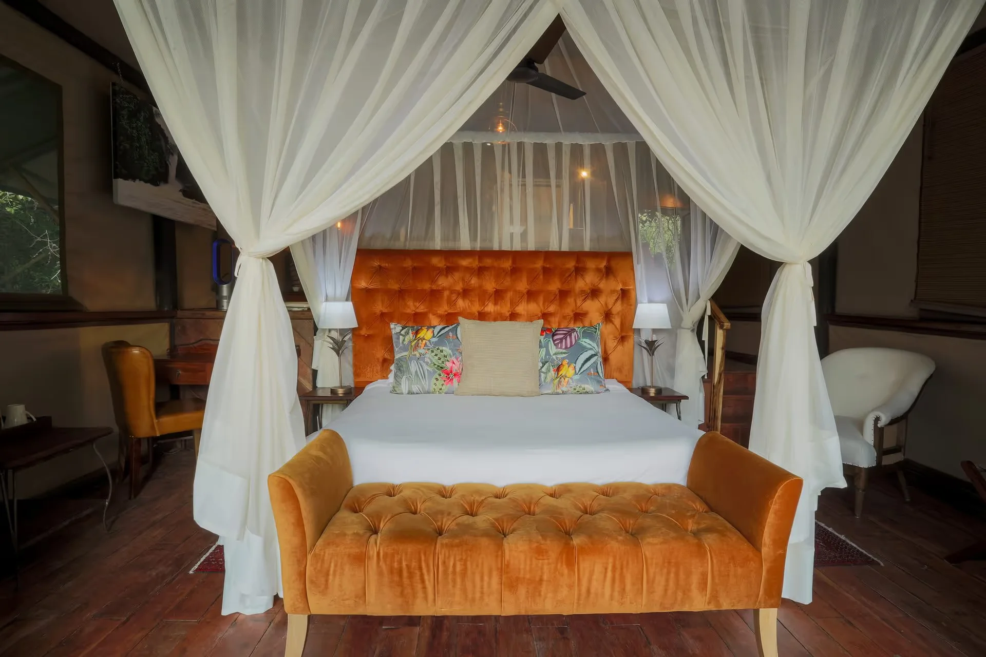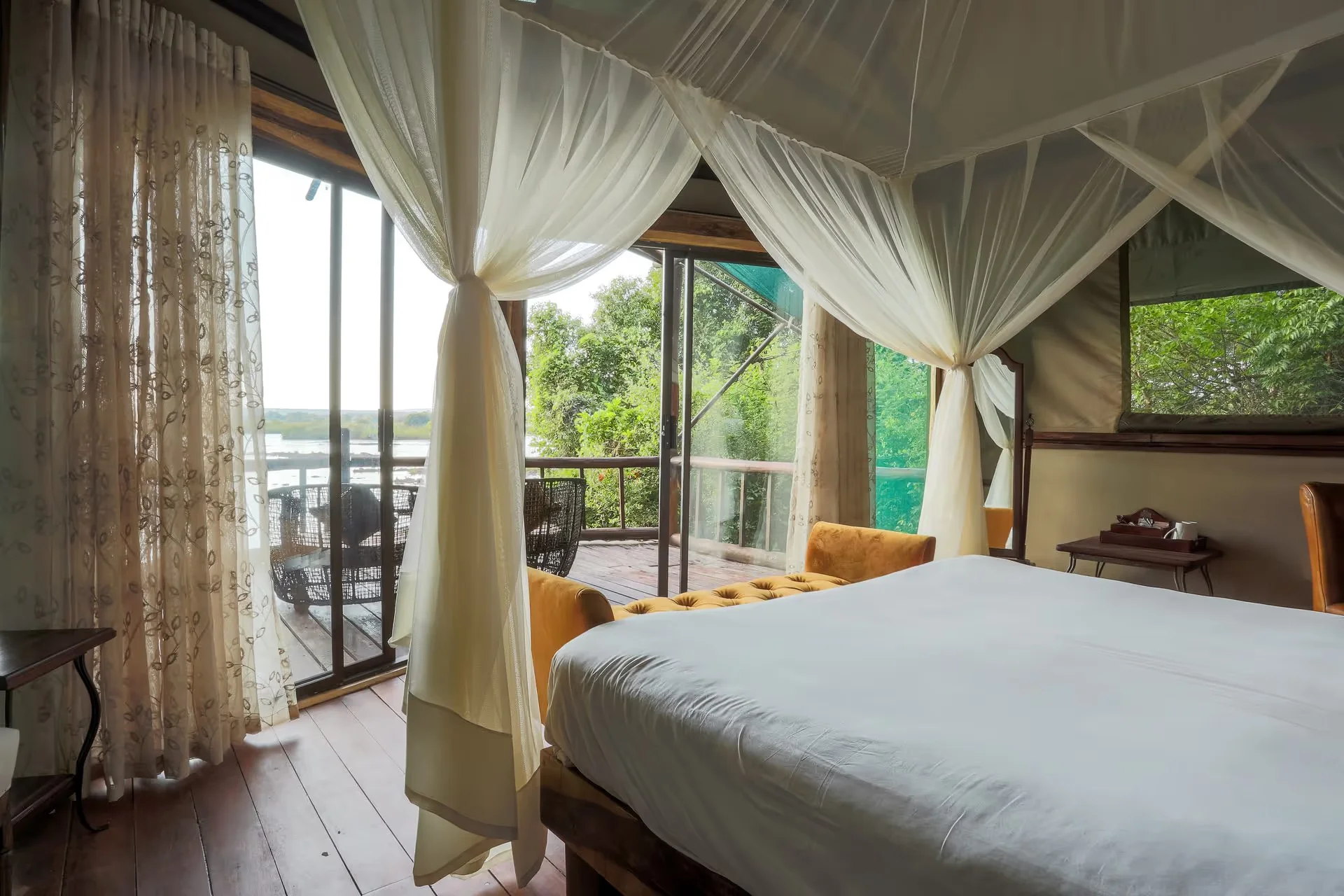 Casais em lua de mel: atmosfera romântica e exclusiva, com suítes privativas em ilhas no Rio Zambeze.