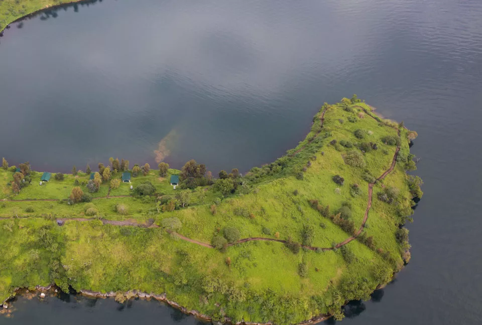 Trilhas de Circunavegação: Caminhadas suaves ao redor da crista da ilha que oferecem vistas de 360 graus para o lago e para as montanhas da fronteira com Ruanda.