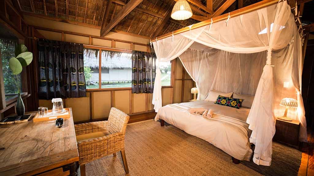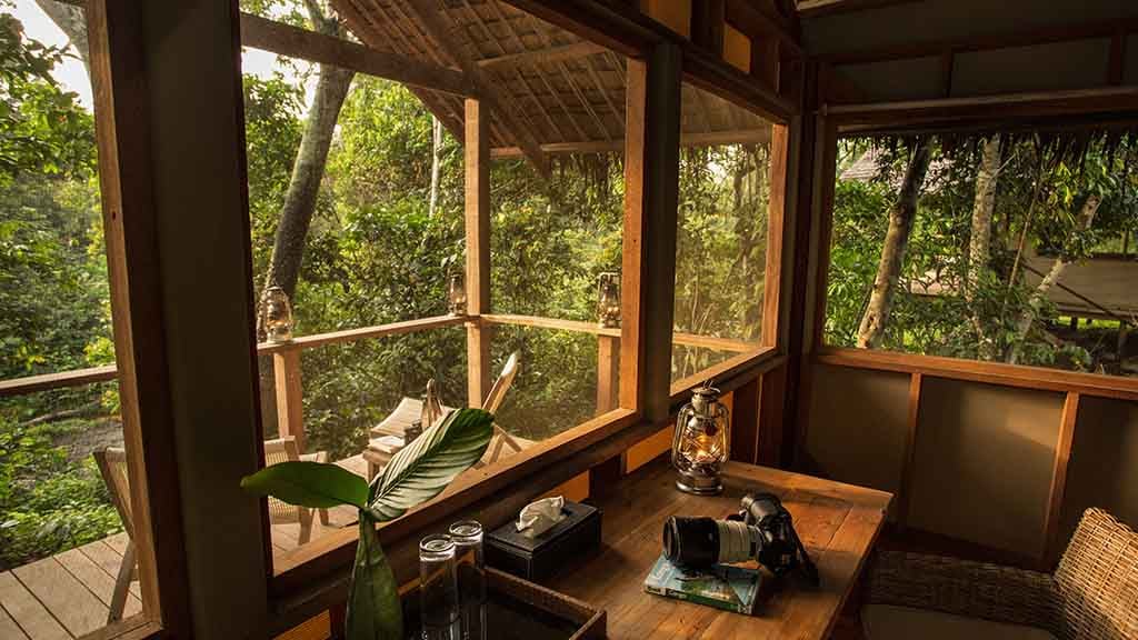 Localizado na confluência de ecossistemas distintos, o Mboko Camp é composto por 10 suítes de lona e madeira, distribuídas ao longo das margens do Rio Lekoli. O design é uma reinterpretação luxuosa do estilo de expedição, com decks privativos que convidam à contemplação da savana pontilhada por cupinzeiros gigantes. É o campo mais “aberto” do circuito, oferecendo uma visibilidade espetacular do céu estrelado e da vida selvagem que transita entre a floresta e a planície. O Mboko serve como o coração logístico da experiência Odzala, equilibrando aventura e um conforto sereno.